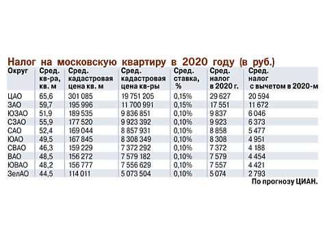 «В результате постепенного перехода от исчисления налоговых платежей с инвентаризационной стоимости на исчисление налоговых платежей от кадастровой стоимости налог на квартиры вырастет в среднем по Москве к 2020 году в 10 раз. Например, инвентаризационная стоимость одной из обычных московских квартир площадью 47 кв. м в 2014 году составляла 340 419 руб., а налог с учетом коэффициентов (0,3%) составлял 1021 рубль. Кадастровая стоимость этой же квартиры определена в размере 9 431 454 руб. Даже с учетом пониженных коэффициентов (0,1% для квартир ценой менее 10 млн) налог на нее составит к 2020 году 9431 рублей (без учета возможных льгот и вычетов). С учетом вычета 20 кв. м налог будет 5426 рублей. В 2016 году он с учетом переходного периода был выставлен в размере 2720 рублей», — пояснил ведущий аналитик ЦИАН Александр Пыпин.