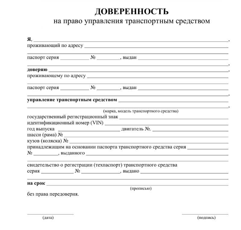 В каких случаях нужна доверенность на управление автомобилем (бланк)