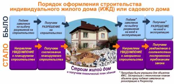 Раньше для того, чтобы строить на землях ИЖС, нужно было получать разрешение на строительство. Сейчас разрешения отменены, строительство можно вести в уведомительном порядке. Это значит, что изменится и порядок регистрации жилых и садовых домов. Если вы начали строить дом до отмены разрешений на строительство, процедура пройдет по ранее действовавшему регламенту.