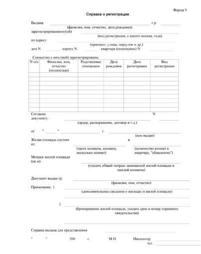 Справка о регистрации по месту жительства, формы 9 и 12 и их получение