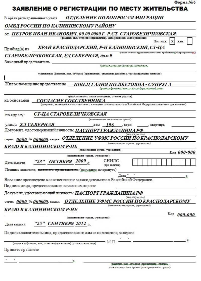 Обычная форма содержит информацию о проживающих на конкретной жилплощади и некоторые данные о самой недвижимости, а именно: