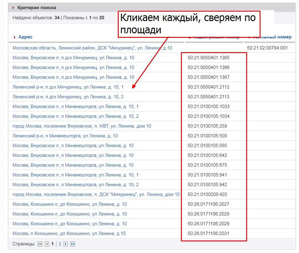 ШАГ 2. Выбираем из вариантов, если несколько. На этом этапе уже видны кадастровые номера.