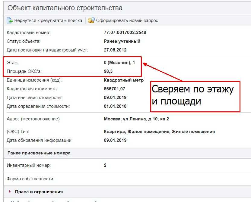 3. Кликаем по каждому найденному объекту недвижимости, проверяем по площади и этажу.