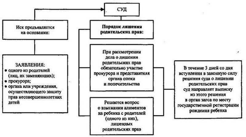 Статьёй 70 Семейного законодательства утверждается судебная процедура по лишению прав родителей.