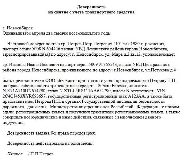 Нужна ли по закону доверенность на снятие автомобиля с учета ГИБДД – образцы для скачивания, правила оформления в 2020 году