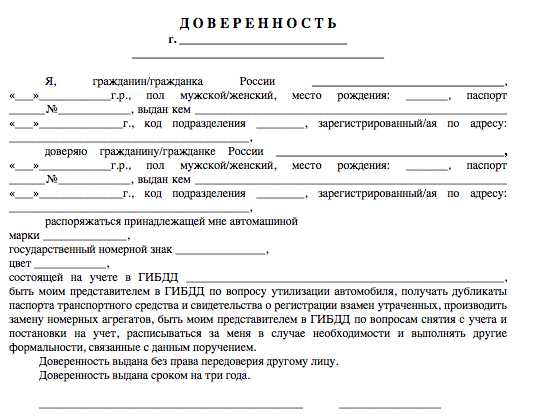 Доверенность на утилизацию автомобиля