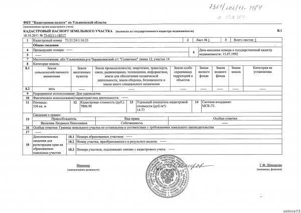 Кадастровый паспорт земельного участка (как выглядит документ, пример)