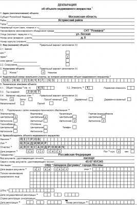 Бланк заявления на дачную амнистию: Декларация об объекте недвижимого имущества