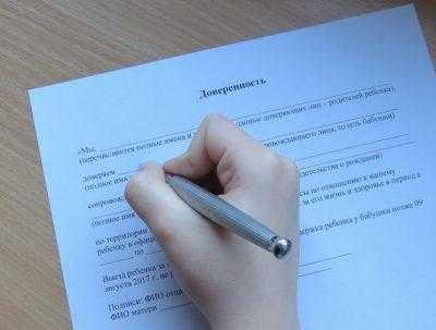 Предпочтительнее оформить доверенность одновременно от двух родителей за подписью обоих. Если же это не представляется возможным, допускается разрешение от одного родителя.