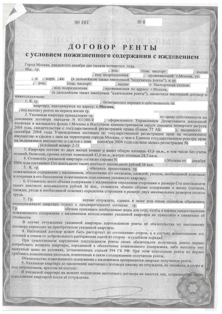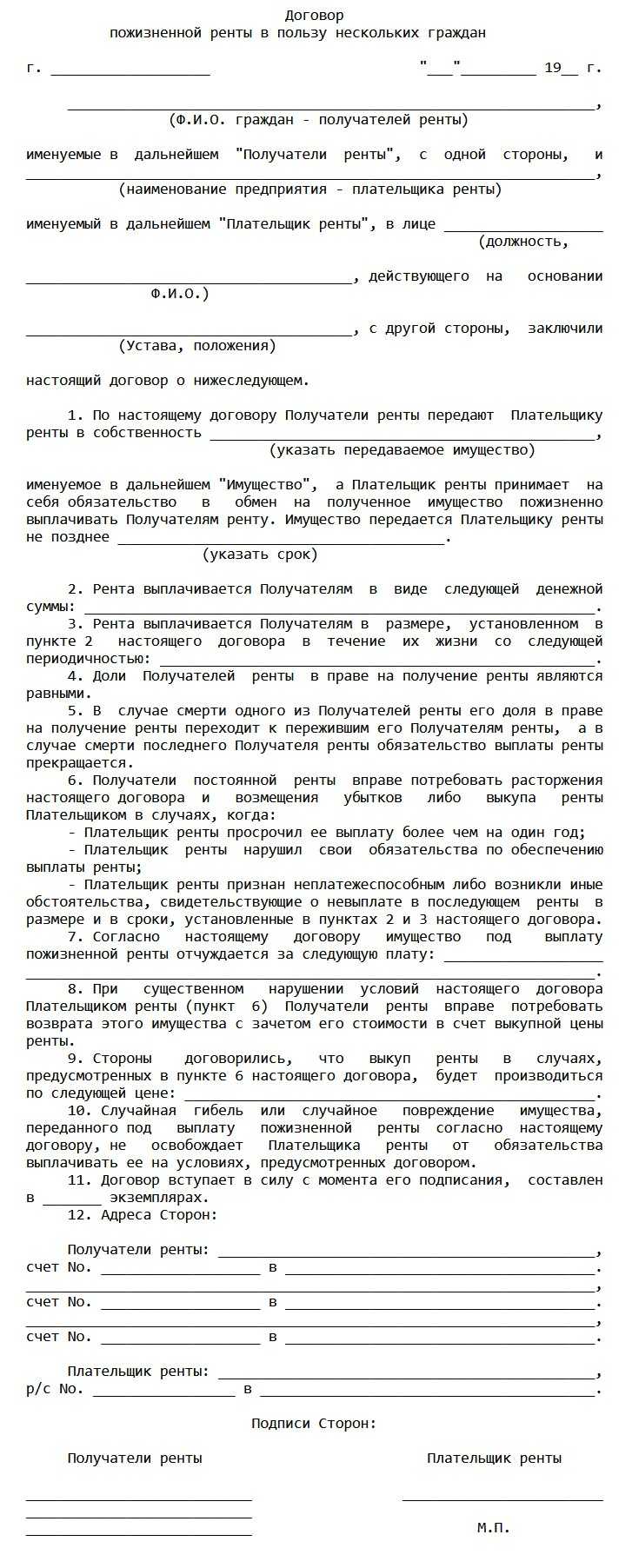 Договор ренты — образец и заполненный пример договора ренты на одного и на нескольких плательщиков