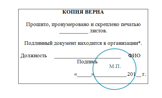 Как правило, это отметку ставят в верхнем углу документа, либо просто на свободном месте. Допустимо ставить штамп или писать от руки «копия верна и ставят дату документа. Также можно указать, где хранится оригинал этого документа с которого и снимается копия.