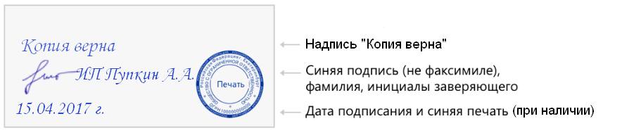 - подпись уполномоченного лица, которым заверяется подлинность копии;
