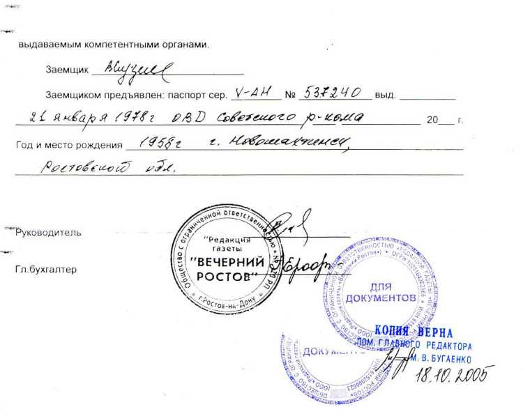 - Внутри своей компании: «Верно», должность и подпись лица, визирующего документ.