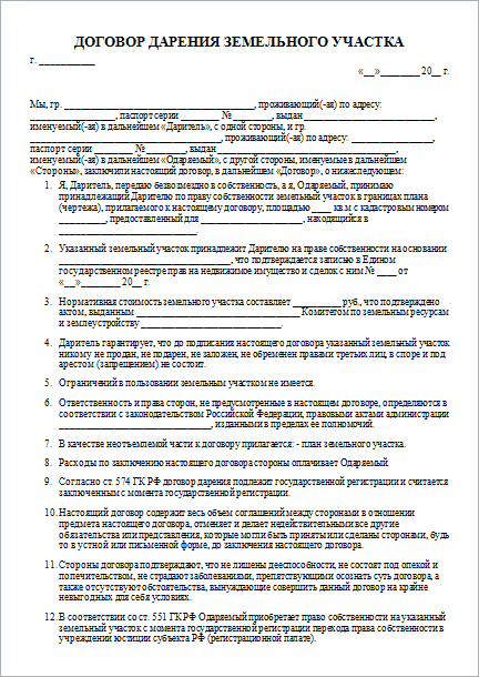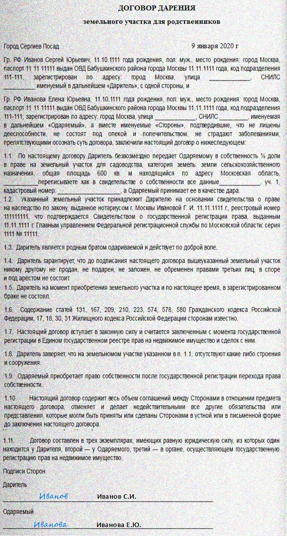 Договор дарения земельного участка в 2020 году: оформление и образец