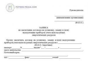 - Заявление владельца дома. В нем указывается: дата и место написания; полные данные заявителя; адрес, по которому надо выполнить работы; номер лицевого счета в компании, обеспечивающей энергоснабжение; характеристики счетчика и реквизиты договора об энергоснабжении.