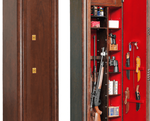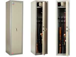 Если у человека большая коллекция огнестрельного охотничьего оружия, для его хранения используют специальные металлические шкафы. Такие шкафы оснащаются множеством различных ячеек для хранения разных частей оружия. Отдельно сделаны ящики для боеприпасов и пороха.