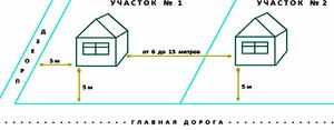 Коттедж должен располагаться не ближе 5 м от дороги и 3 м от тупиковых дворов или улиц с малым движением.
