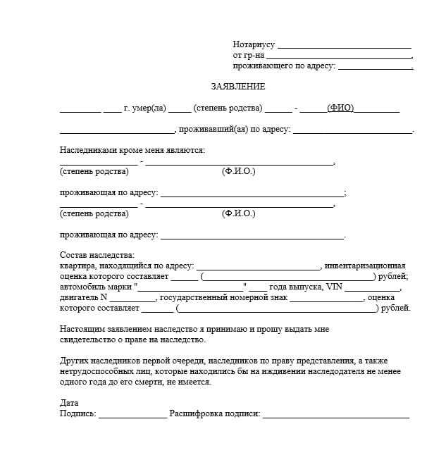 После этого необходимо в соответствии с данными в документах заполнить заявление на получение наследства. Бланк предоставляет нотариус. Затем в нотариате осуществляются проверки на подлинность документов и сверяются данные в них, идёт поиск дополнительных наследников. Если всё в порядке, выдаётся свидетельство о вступлении в наследство.