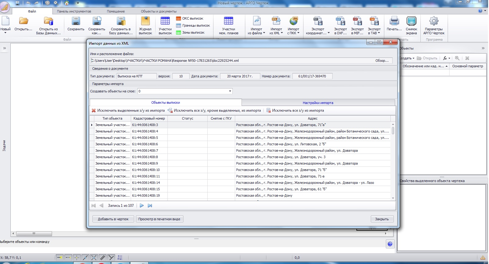 2) Загрузите кадастровый план территории в программу Арго 7 и нажмите на кнопку «Добавить в чертеж».