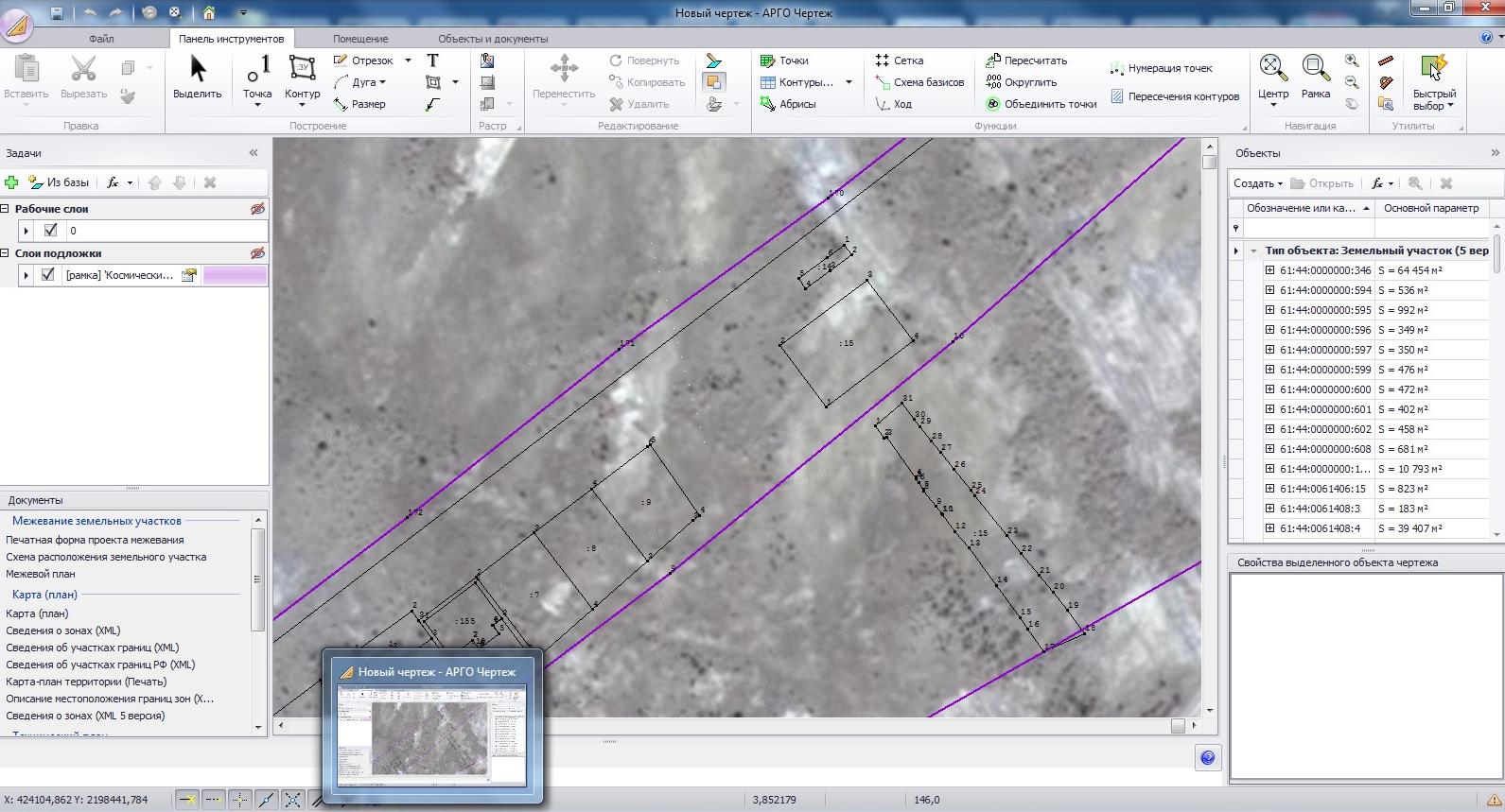 4) На плане земельного участка загрузите топооснову, для того чтобы отобразилась карта со спутника со всей инфраструктурой.