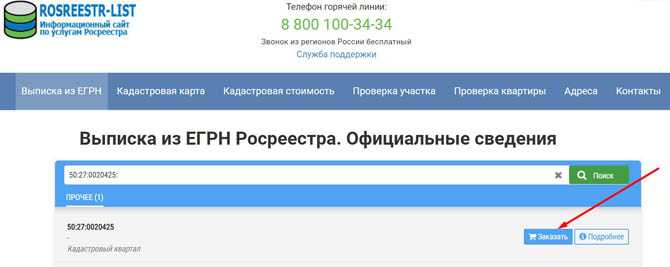 - перейдите по ссылке 👉 https://rosreestr-list.ru/vypiska-iz-egrn и в форму поиска введите именно номер кадастрового квартала и нажмите на «Поиск»;