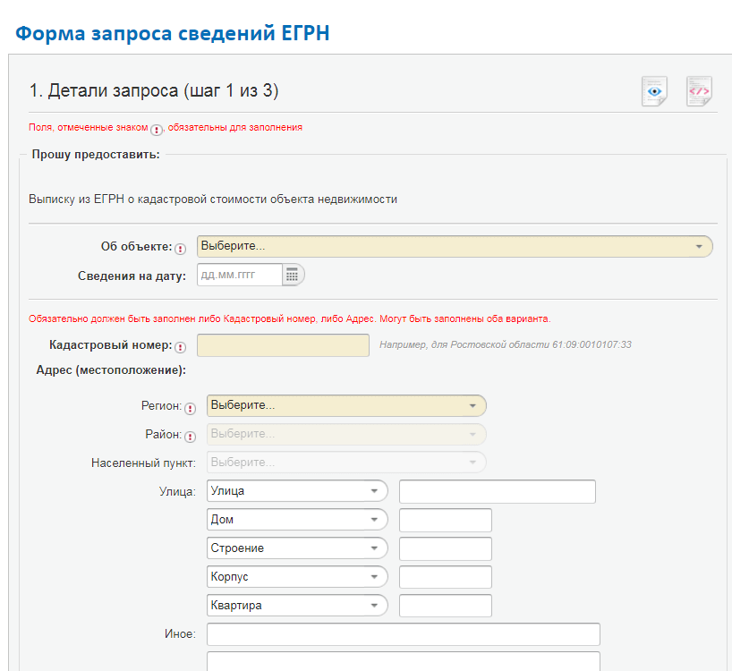 - Указать адрес или кадастровый номер объекта. Обычно используется первая характеристика.