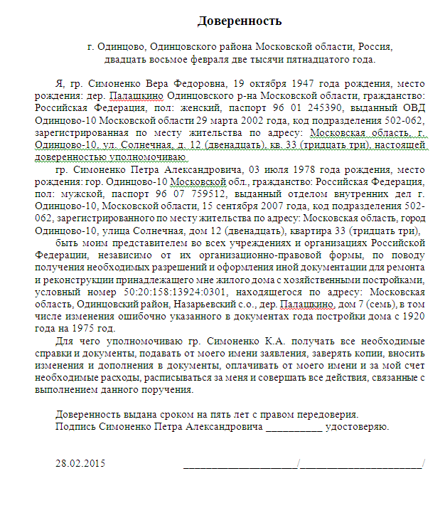 В доверенности должны обозначаться все паспортные данные доверителя и лица, уполномоченного им на выполнение действий, рамки которых ограничены.