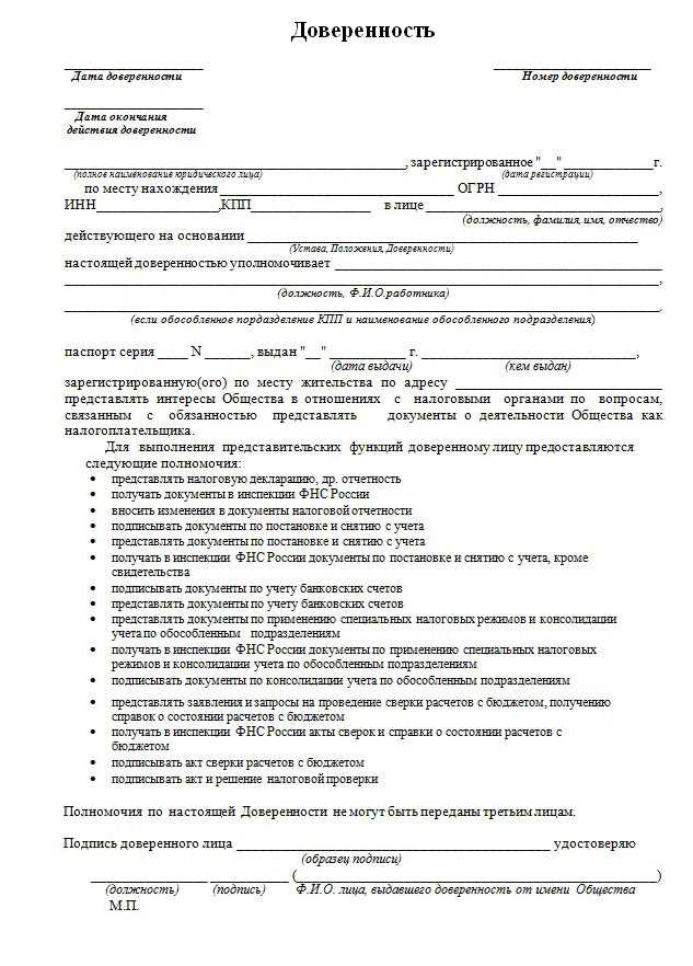 Доверенность в налоговую (ИФНС): скачать бланк или образец