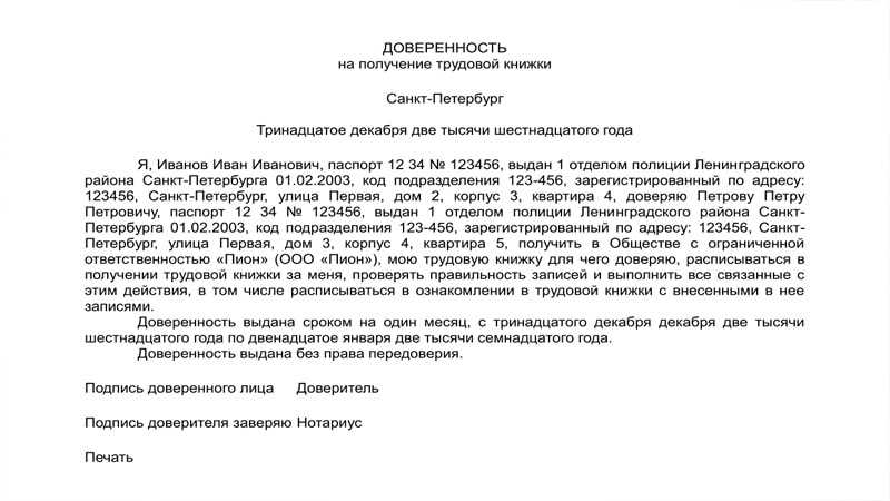 Доверенность на получение документа произвольная, унифицированной формы нет, составляется в письменном виде. Однако есть и обязательные пункты для информации.