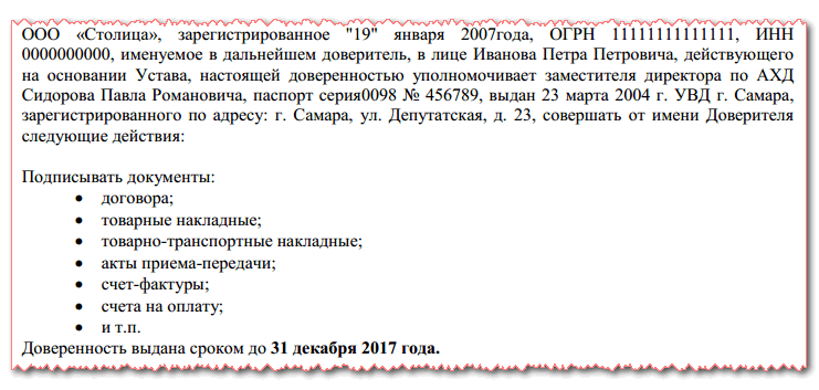 Как правильно составить доверенность на право подписи документов от юридического лица?