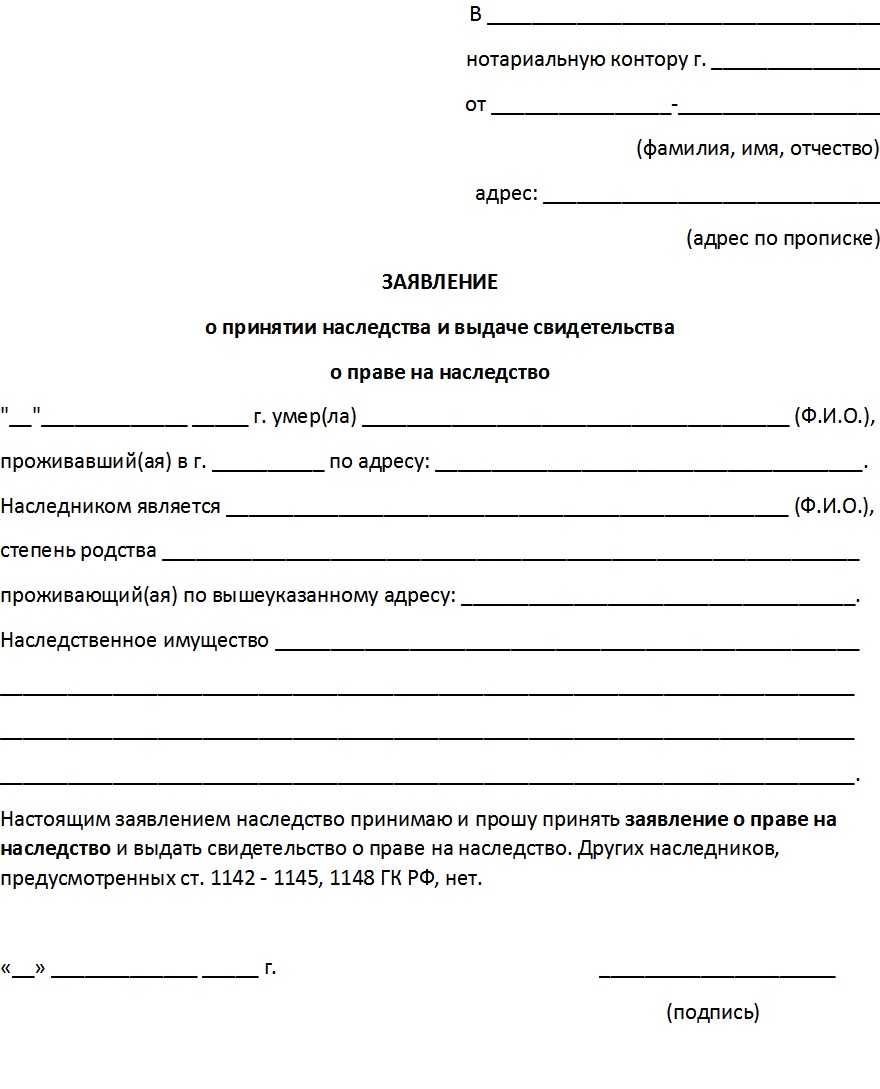 Заявление о принятии наследства