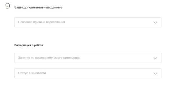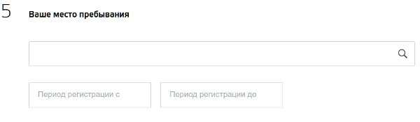 - Укажите место своего пребывания и период, на который планируете остаться.
