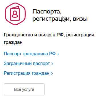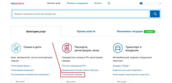 Откройте сайт госуслуг и перейдите в каталог доступных услуг. На первой вкладке найдите раздел «Паспорта, регистрации, визы». Нас интересует пункт «регистрация граждан», нажимаем на него.
