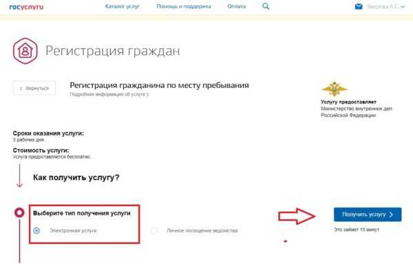Так как мы оформляем временную регистрацию через интернет, то устанавливаем тип получения услуги «Электронная услуга» и жмем на ссылку «заполните заявление».