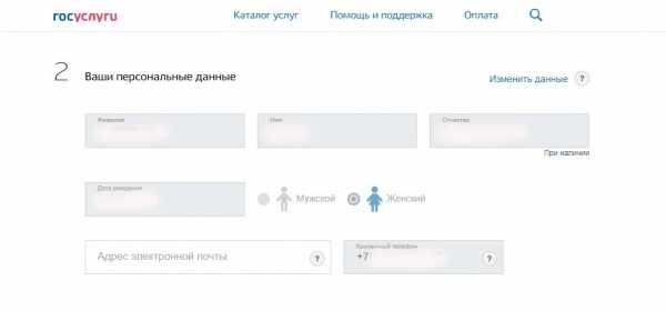 Если гражданин ввел все сведения в процессе создания личного кабинета, то эти данные перенесутся в следующие графы. Если нет, то необходимо заполнить их в представленных строках.