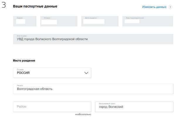 Проверьте ваши паспортные данные или внесите их вручную. Помимо этого, укажите страну, регион и место вашего рождения.