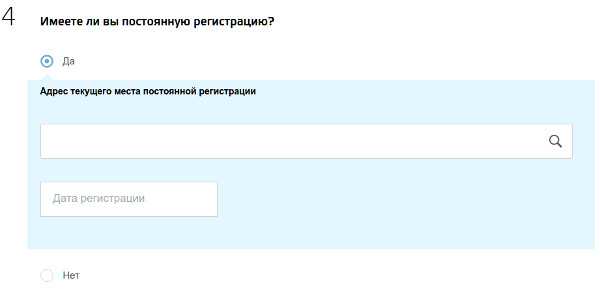 - При наличии постоянной регистрации поставьте галочку напротив положения «да».