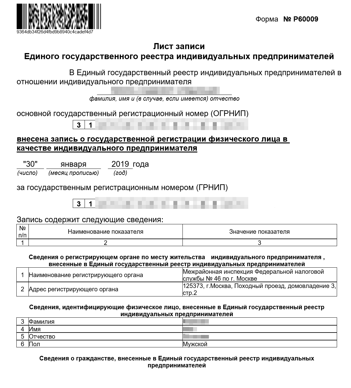 После выбора ОКВЭД я загрузил скан первой страницы паспорта в формате TIFF, расписался новенькой электронной подписью и стал ждать результатов. Примерно через неделю на почту пришел архив с документами, подтверждающими мою регистрацию в качестве индивидуального предпринимателя.