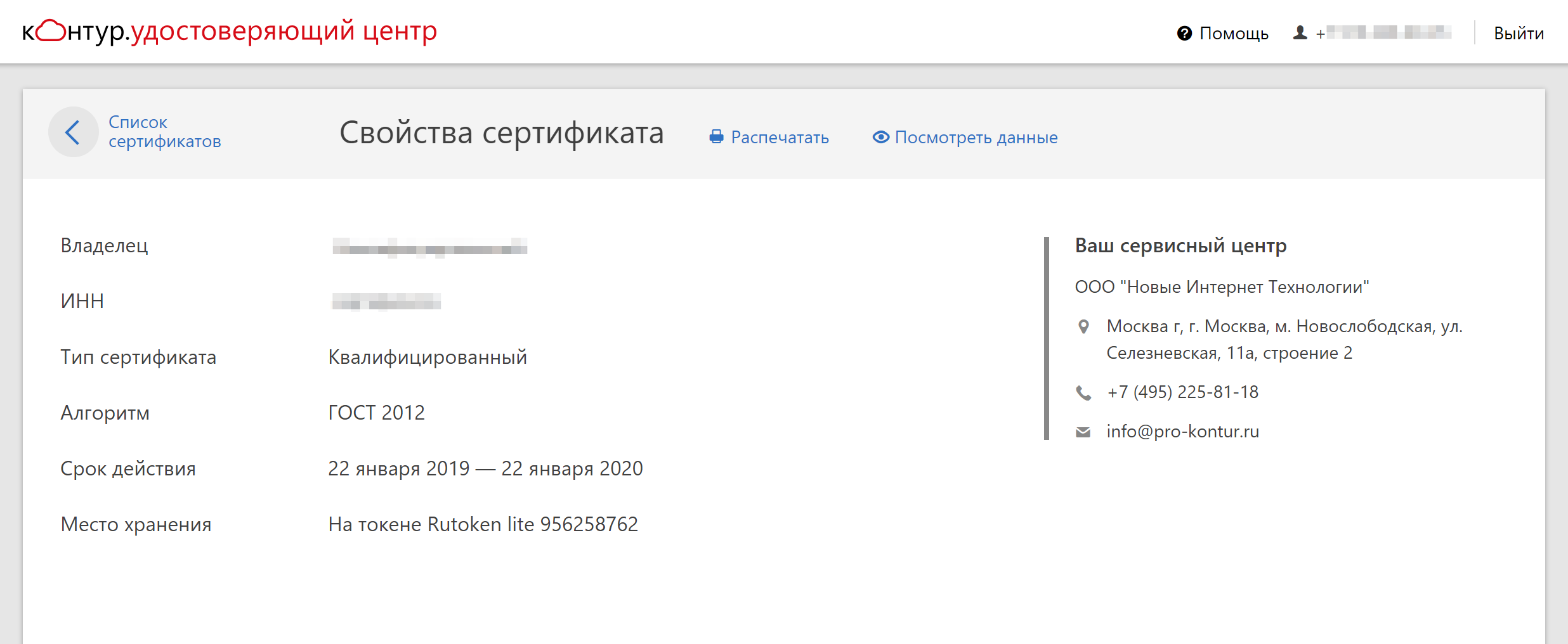 В личном кабинете на сайте удостоверяющего центра показывают срок действия сертификата и где он установлен