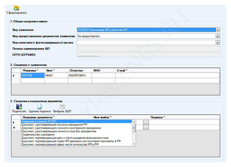 С помощью этого сервиса вы можете через Интернет подать только заявление на регистрацию. Все остальные документы для открытия ИП вам придется оформить отдельно и в бумажном виде отнести в территориальную ИФНС.