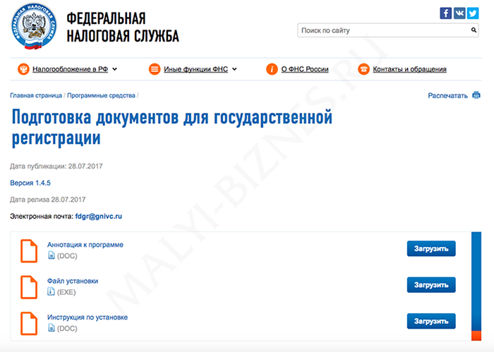 На портале налоговой можно скачать еще одну программу для создания контейнера с документами ИП, которая называется: «Подготовка документов для государственной регистрации»: