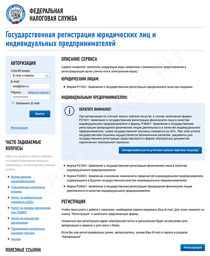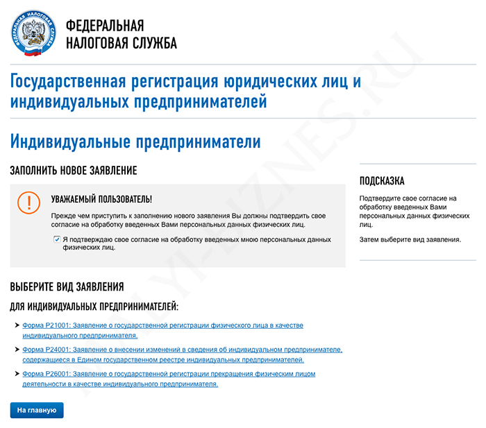 Как подать заявление для регистрации ИП через сервис на сайте налоговой