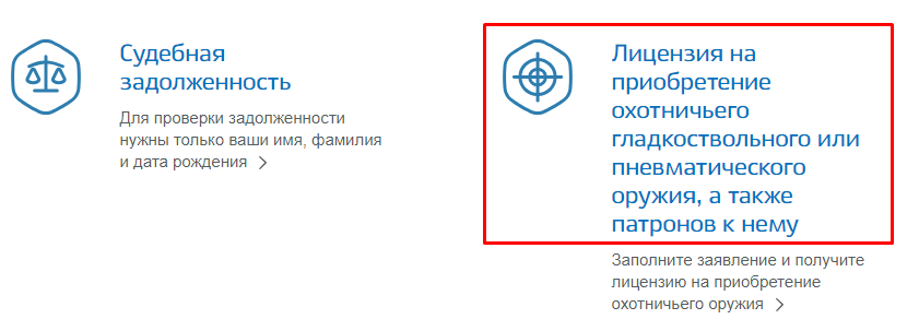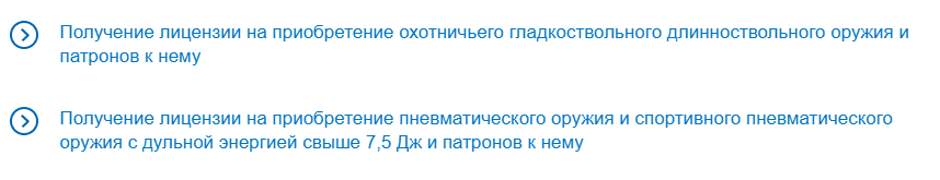 - Кликните на раздел о лицензии на приобретение охотничьего оружия.