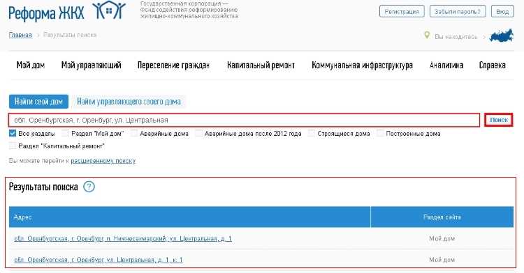 - На главной странице сайта введите свой адрес и нажмите «Поиск».