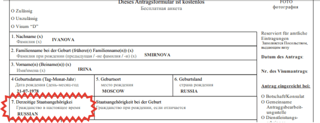 Образец заполнения графы о гражданстве в анкете на Шенген.
