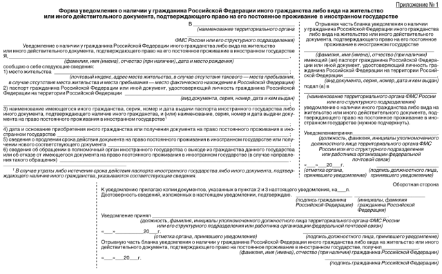 Форма уведомления о наличии у гражданина РФ иного гражданства.
