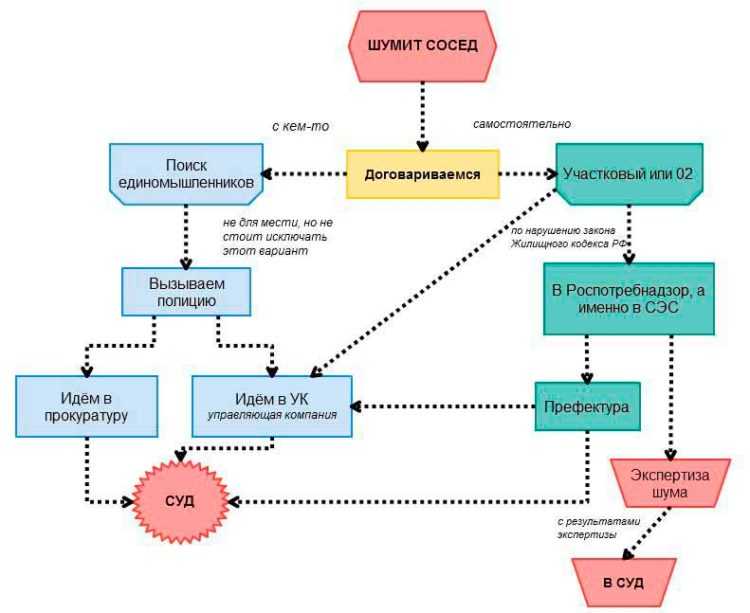 Первым способом будет мирная беседа с нарушителями. Зачастую можно договориться с соседями о периоде проведения работ, не привлекая специализированные органы.