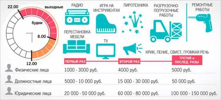 Нарушив час тишины, гражданин заплатит от 500 рублей до 5 000, должностное лицо – от 500 рублей до 40 000, а юридическое лицо – 10 000 до 300 000 рублей.