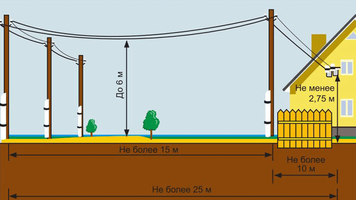 Владельцу земли стоит также учесть, что если ближайший столб, от которого планируется тянуть кабель, расположен на расстоянии более чем 25 метров от границы участка, то придется устанавливать дополнительный столб ЛЭП за свой счет.