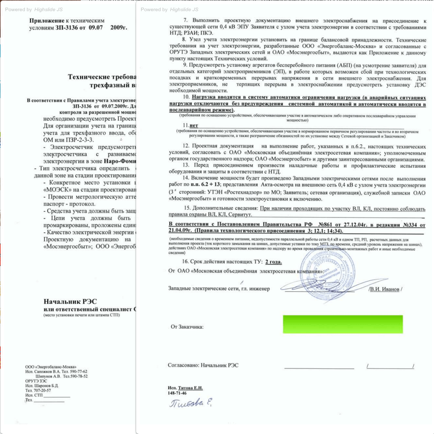 Техусловия на присоединение к электросетям